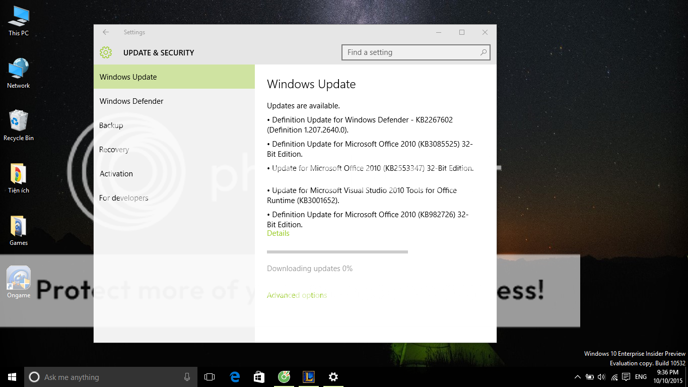 không tài nào mà nó update lên đc ạ. có phải tại cái office 10 của em ko?? mong các bác chỉ
